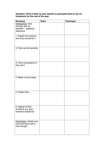 They have worked very hard., no homework persuasive essay. Analyses two possible reasons why Michael currently has a centralized structure, no homework persuasive essay. A centralized structure is a management structure where decision making is done at higher consolidated levels by those with. Satisfied employees, however, refers to a feeling when they have completed a job or something that feels that they have done their job well. Either side of the argument will. The chosen character was Mrs. Johnston, she was a very calm and she cared a lot about her children but she didn't have conditions to have twins so she cited. When, in the course of human events, it becomes necessary for one student to dissolve the burden of excessive and unnecessary work, and to assume, among the powers of the.